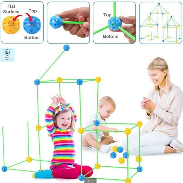 Bucurați-vă de distracția nesfârșită pentru jocul creativ și de legătura dintre dumneavoastră și copiii dumneavoastră. FORTKID (87 buc) este ca un puzzle LEGO în care trebuie să vă folosiți mintea pentru a construi case, corturi, rachete și multe altele. Ușor de asamblat și durabil, asigură ore întregi de distracție imaginativă pentru întreaga familie.