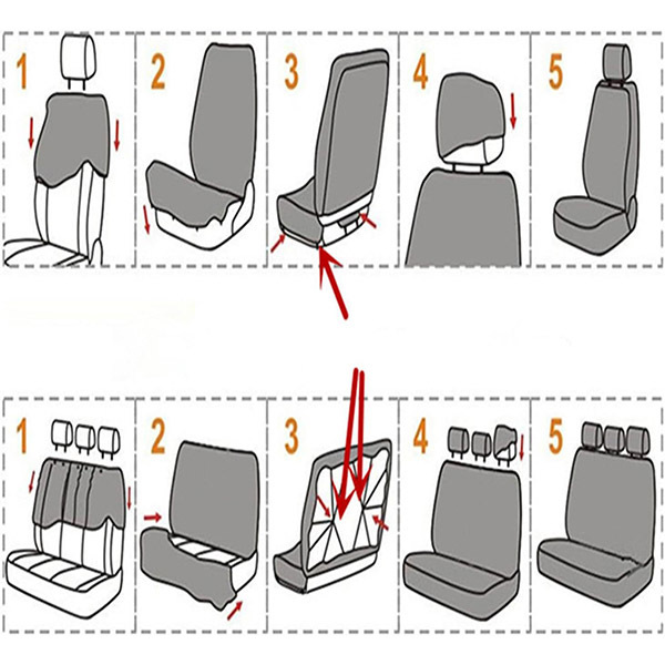 Husă pentru scaunele din spate: o bucată (scaun și spătar) pentru toate scaunele din spate împreună